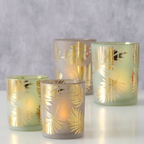 ΚΗΡΟΠΗΓΙΟ 2/ass Set/2 ΣΧΕΔΙΟ ΦΥΛΛΑ Golden Jungle ΚΑΦΕ ΠΡΑΣΙΝΟ H9-13cm d7/10cm ΓΥΑΛΙ Floral