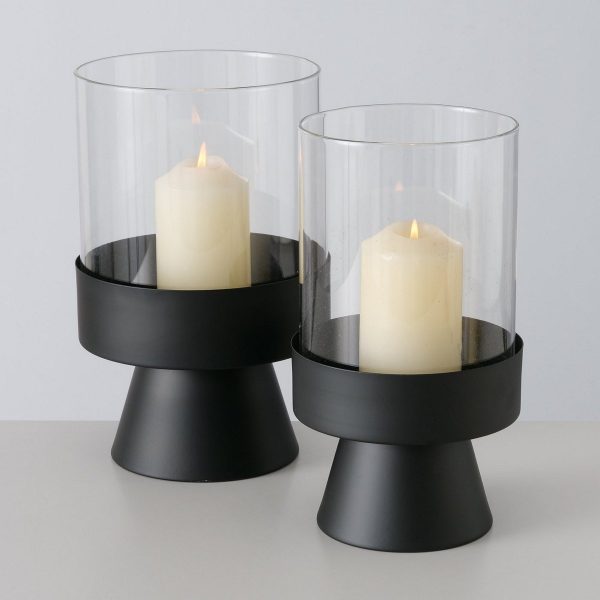 ΚΗΡΟΠΗΓΙΟ Set/2 Pallas H28/29cm D16/19cm ΔΙΑΦΑΝΕΣ ΓΥΑΛΙ ΒΑΣΗ ΜΑΥΡΟ ΜΕΤΑΛΛΟ