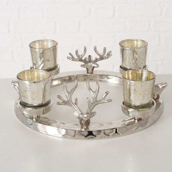 ΚΗΡΟΠΗΓΙΟ ΣΤΡΟΓΓΥΛΟ ΜΕ ΚΕΦΑΛΙ ΕΛΑΦΙΟΥ ΚΑΙ ΚΗΡΟΠΗΓΙΑ ΡΕΣΩ Hermo D28 H10cm ΑΛΟΥΜΙΝΙΟ ΑΣΗΜΙ