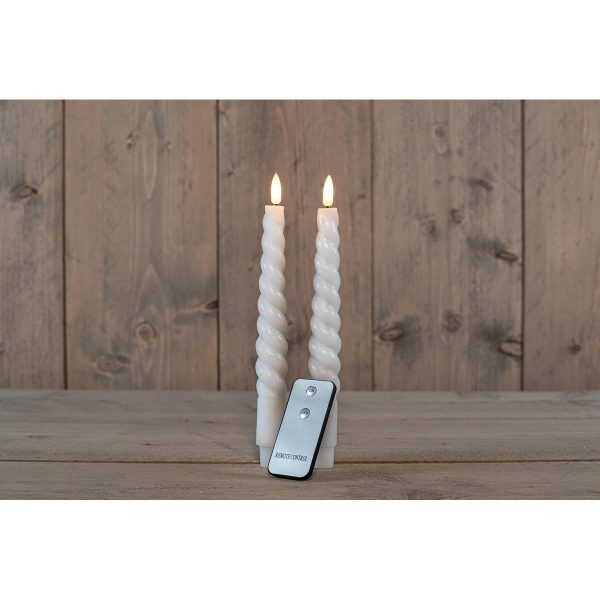 ΚΕΡΙ ΣΠΑΡΜΑΤΣΕΤΟ ΣΤΡΙΦΤΟ ΛΕΥΚΟ RUSTIC 2ΤΜΧ TAPER 23CM ΜΕ ΚΙΝΟΥΜΕΝΗ ΦΛΟΓΑ ΜΠΑΤΑΡΙΑΣ REMOTE CONTROL 2 X AAA – COLOURBOX