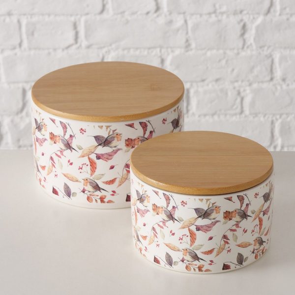 ΔΟΧΕΙΟ ΑΠΟΘΗΚΕΥΣΗΣ Set/2 ΦΥΛΛΑ ΜΕ ΠΟΥΛΙΑ Kehly H9-10,5cm D13,5-16 cm ΚΑΠΑΚΙ Bamboo ΚΕΡΑΜΙΚΟ ΕΚΡΟΥ ΚΑΦΕ