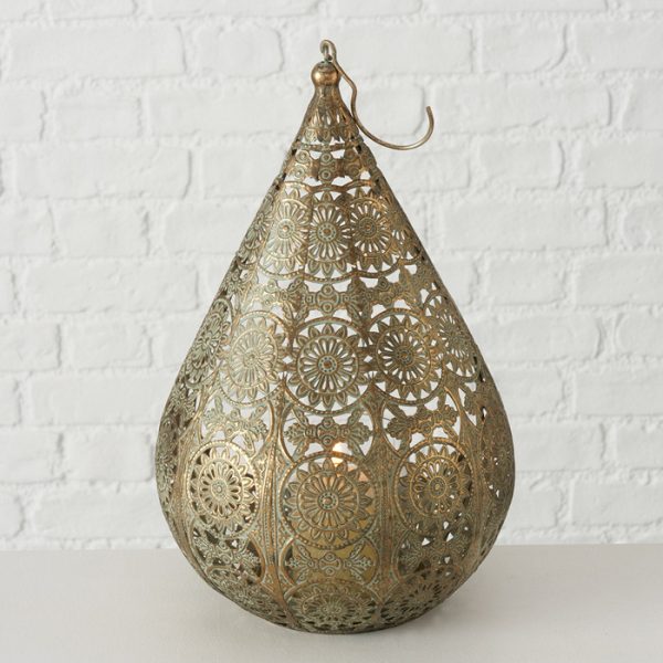 Windlight Tyria, 2 p., Set 2, Round, H 10-13 cm, Aluminium, Single-colour aluminium gold