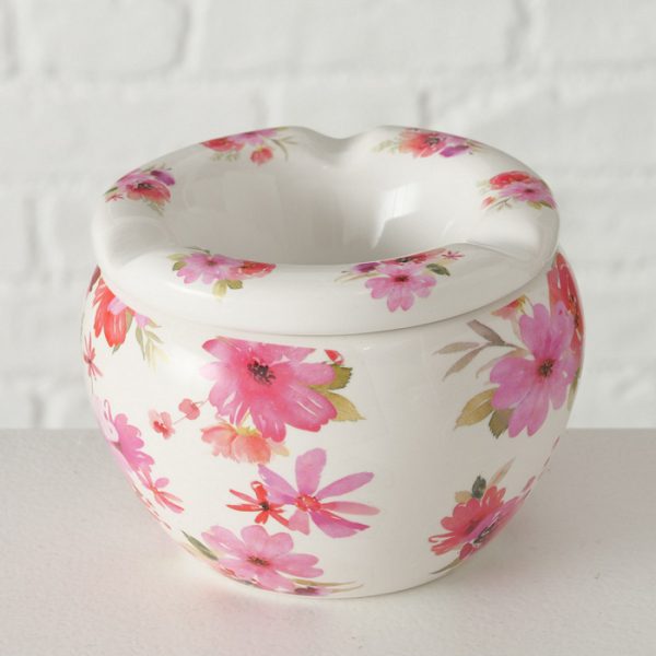 Outdoor ashtray Rosella, 2 ass., H 8,00 cm, Dolomite, Glazed, Printed, Round dolomite colour-mix