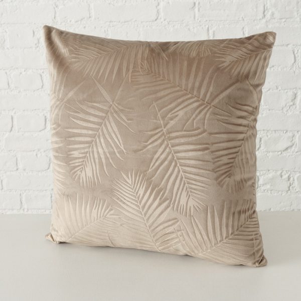 Pillow Livara, 2 ass., 45x45x15cm Polyester satin / 100%, Leaf, Single-colour, Beige, Dark red polyester satin colour-mix