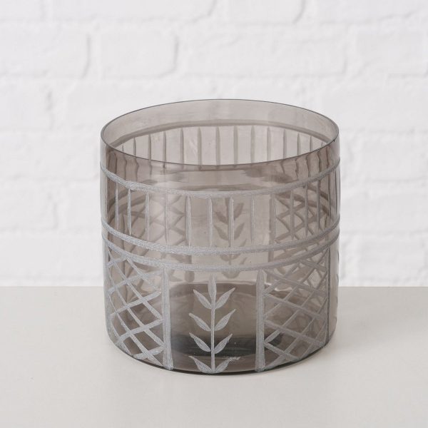 Windlight Carva, 4 ass., Round, H 11 cm, Glass laquered, Single-colour glass laquered grey