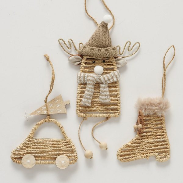 Decorative pendant Naturi, 3 ass., Deer, Boots, Sleigh, Car, L 13,00 cm, H 16,00 cm, No mixed materials natural