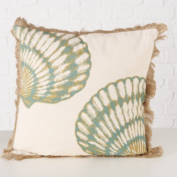 Pillow Scal, 2 ass., Cotton / 100%, Seashell, Multi-coloured, Motif, Beige, Blue, Light blue, Light brown cotton colour-