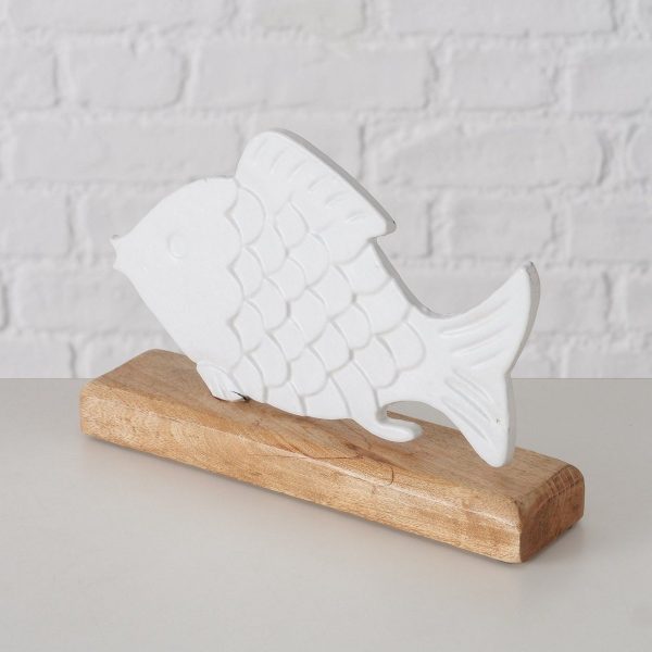 Figurine Laiza, 2 ass., Fish, 20X5X14 cm, Mango (Mangifera indica), Alu nickle, White, Natural mixed materials colour-mi