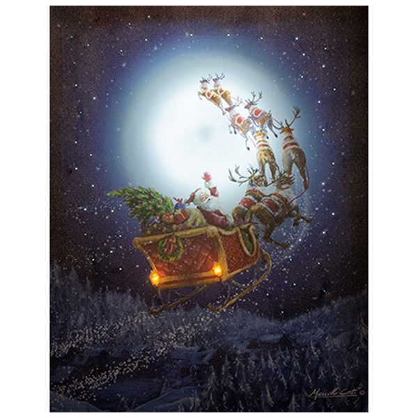 B.O. LED INDOOR CANVAS 48X38X1,5CM SANTA FULL MOON – 2LED / BIG LED MOON AND 42 FIBER STEADY STARS – 3AA
