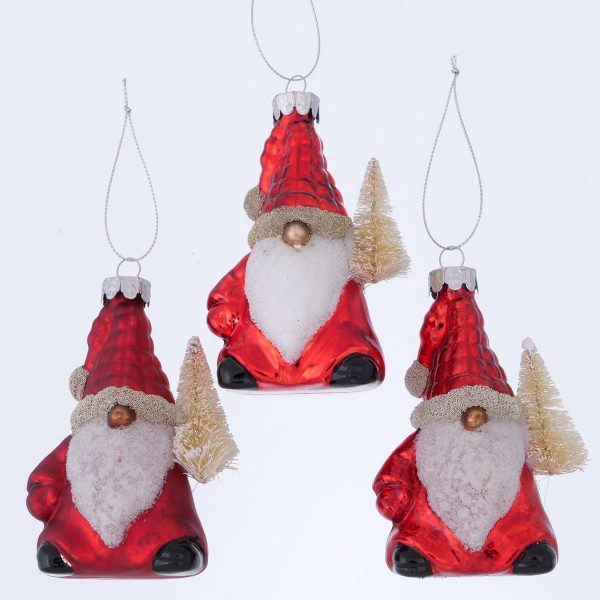 Christmas pendant Santalino, 3 ass., Santa, L 8 cm, H 12 cm, Glitter, Mat, Shiny mixed materials red