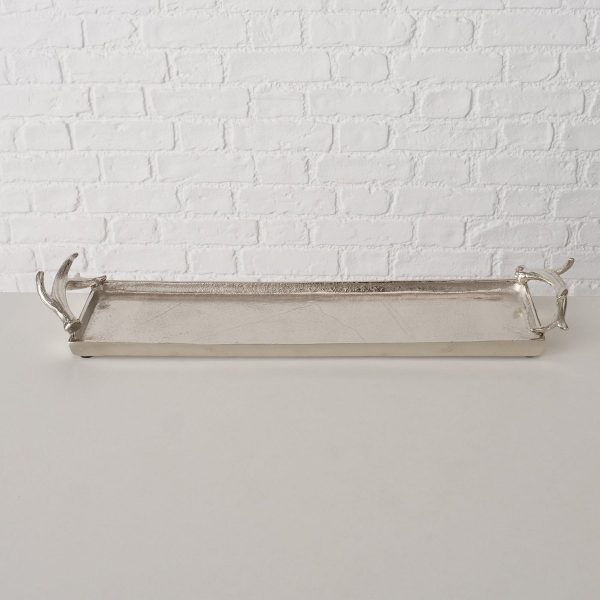 Candle holder Russell, Deer, H 31,5 cm, L 23 cm, Alu nickle alu nickle silver