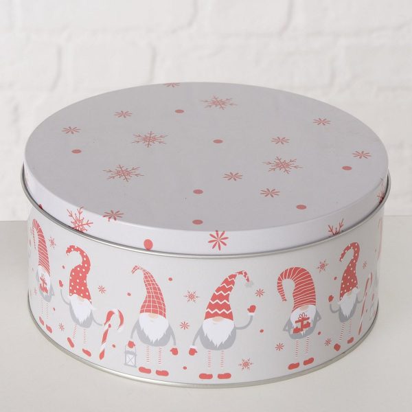Storage canister Knuffel, 2 p., Set 2, H 7,50-7,00 cm, Iron, Grey, Light grey, Red, White iron colour-mix