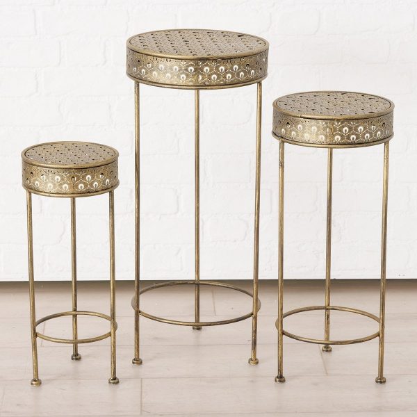 Table Grecia, 3 p., Set 3, Side table, Extendable, H 50,00-70,00 cm, D 20,00-30,00 cm iron antique gold