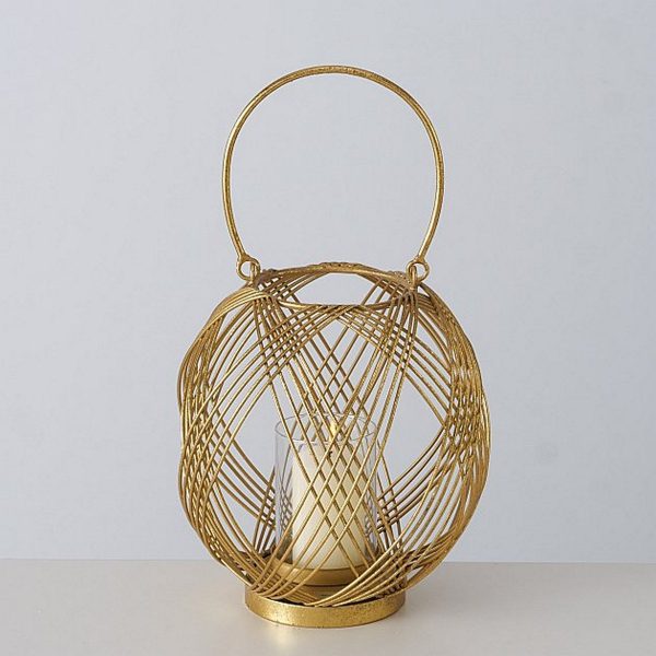 Windlight Sulana, Round, H 22,00 cm, Iron, Clear glass, Single-colour mixed materials gold