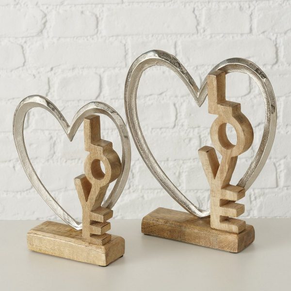 Decorative object Tova, 2 p., Set 2, Heart, H 22,00-26,00 cm, Mango (Mangifera indica), Alu nickle, Multi-coloured mixed