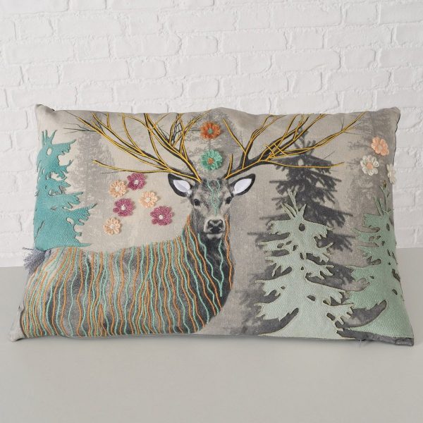 Pillow Skory, Cotton, Deer, Forest, Multi-coloured, Motif, Brown, Grey cotton colour-mix