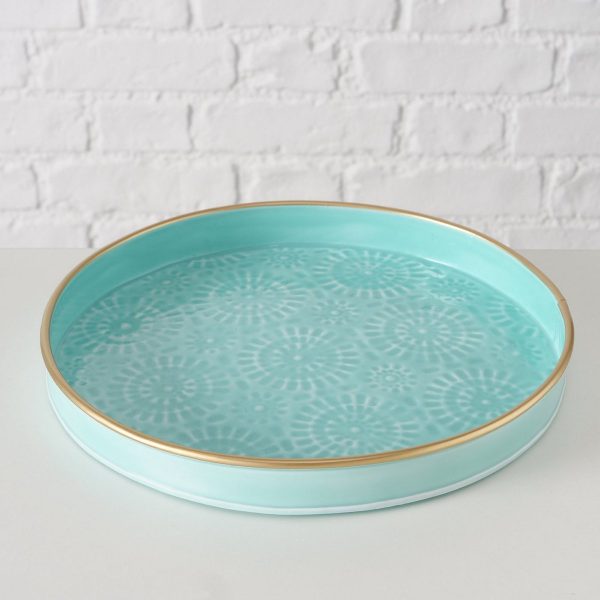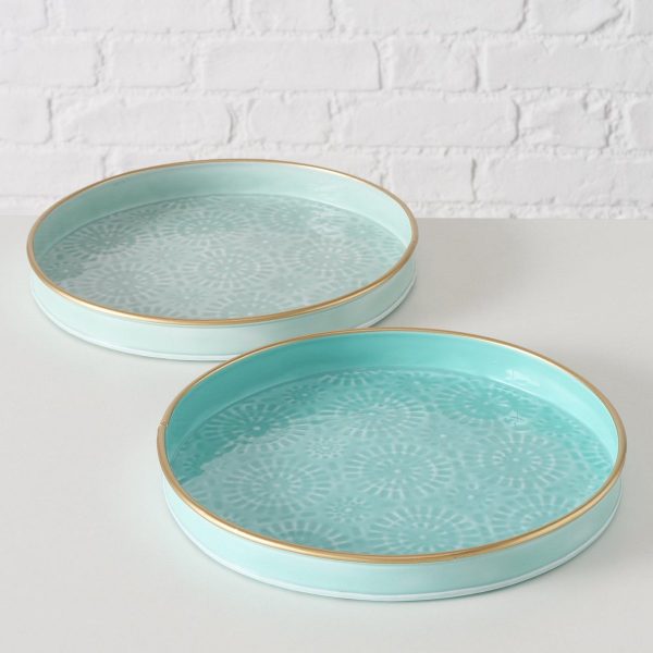 Tray Turkisa, 2/ass D25 Η3 cm Iron enameled Coloured edge, Light turquoise, Turquoise iron enameled colour-mix