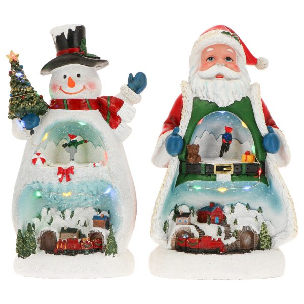 Santa and snowman with train 2ass animated Adaptor incl.-17,5×13,5×30,5cm-LED-multicolor