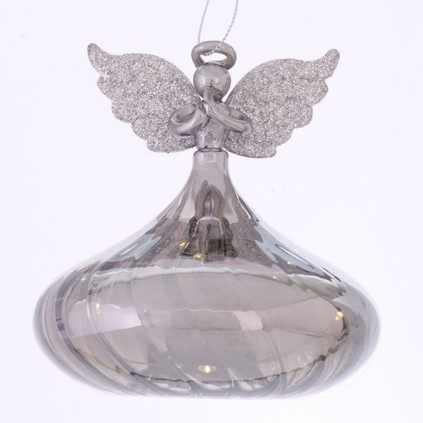 Figurine Carrie, Angel, LED, H 12,00 cm, Glass laquered glass laquered dark grey