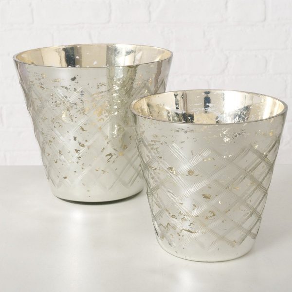 Windlight Doren, 2 p., Set 2, Round, H 12-15 cm, Glass laquered, Multi-coloured glass laquered colour-mix