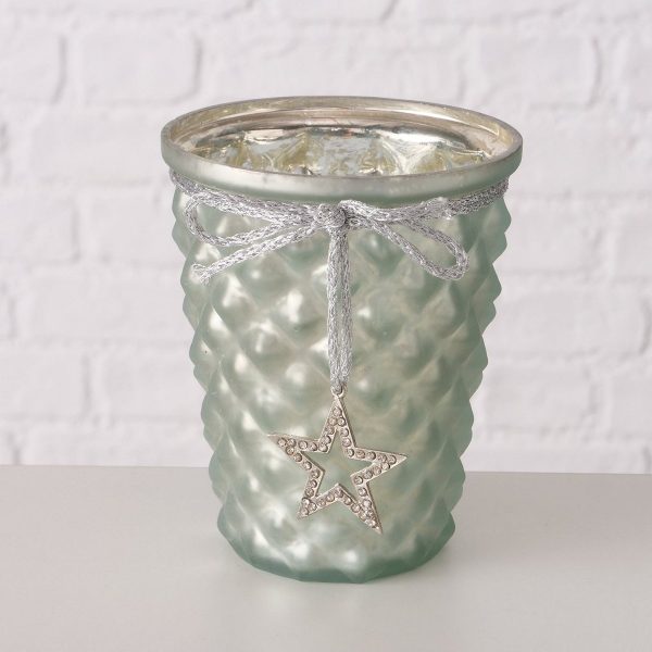 Windlight Caldani, 2 p., 2 ass., Set 2, Funnel, H 12,00-14,00 cm, Glass laquered, Light blue glass laquered Light blue