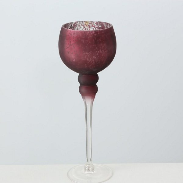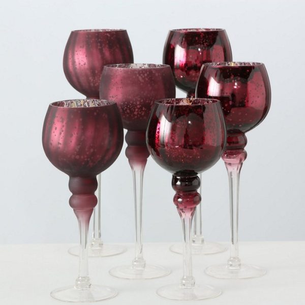 Windlight Manou, 3 p., 2 ass., Set 3, D13 H30-40 cm, Glass laquered, Wine red glass laquered wine red