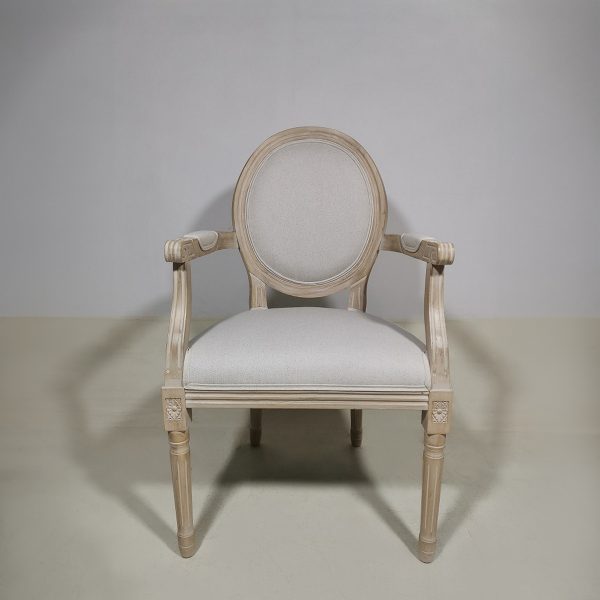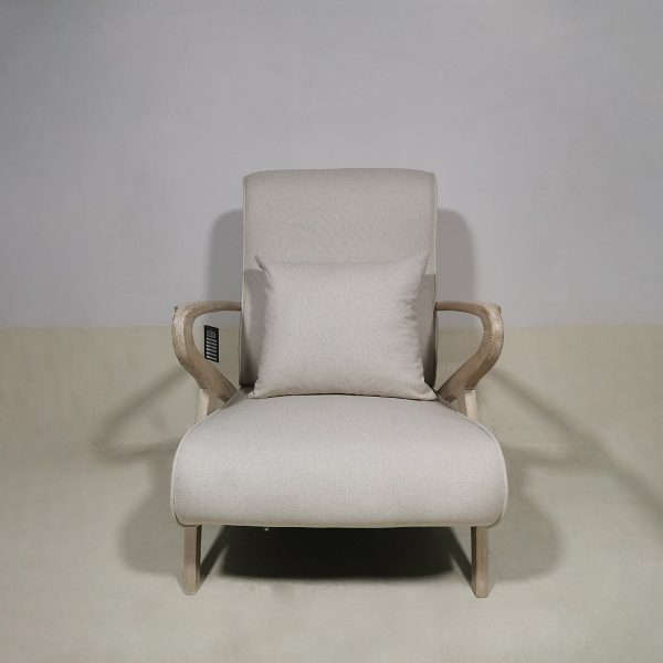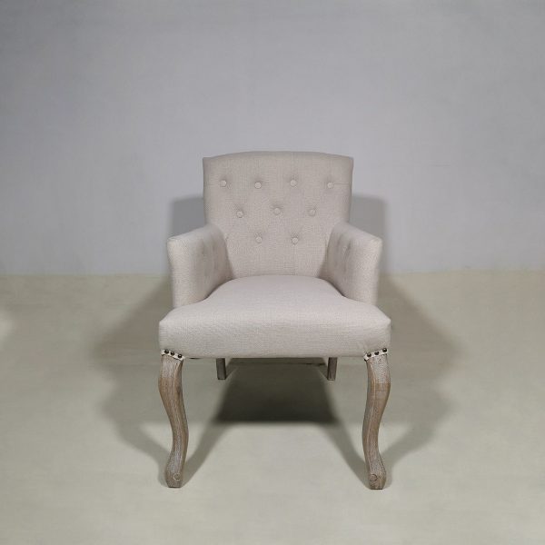 ARMCHAIR RUBBER WOOD COLOR C10 FABRIC 093-1 BEIGE POLYESTER+ ANTIQUE BRONZE METAL NAIL W59*D62*H47/85CM