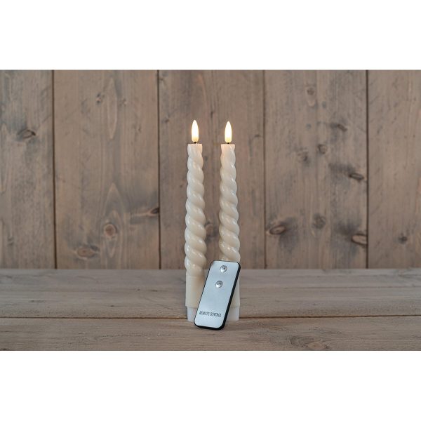 B.O. 2PCS IVORY SWIRL RUSTIC WAX TAPER CANDLE 23CM 3D WICK REMOTE CONTROLLED (ON/OFF) 2X2AAA / COLOURBOX