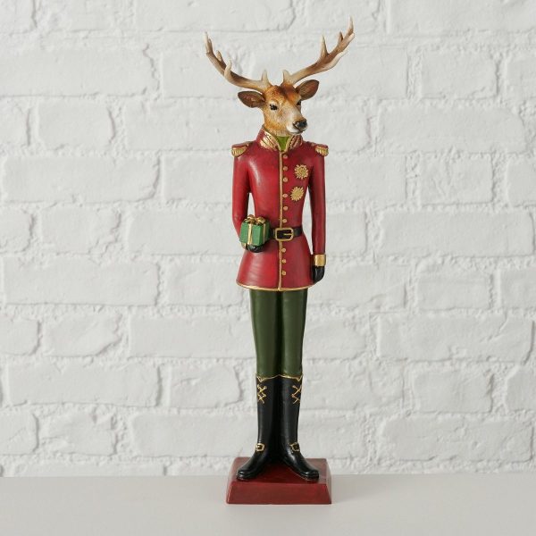 Figurine William, 2 ass., Deer, H 40,00 cm, Polyresin, Black, Green, Red polyresin colour-mix
