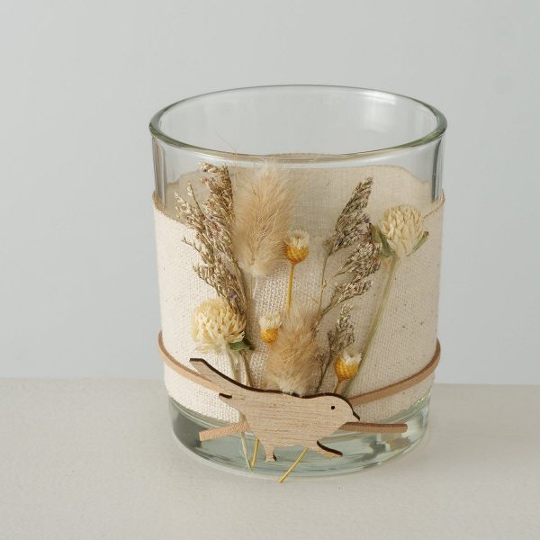 Windlight Naturo, 2 ass., Round, H 10,00 cm, Glass, Linen, Dry flower, Multi-coloured, Floral mixed materials colour-mix