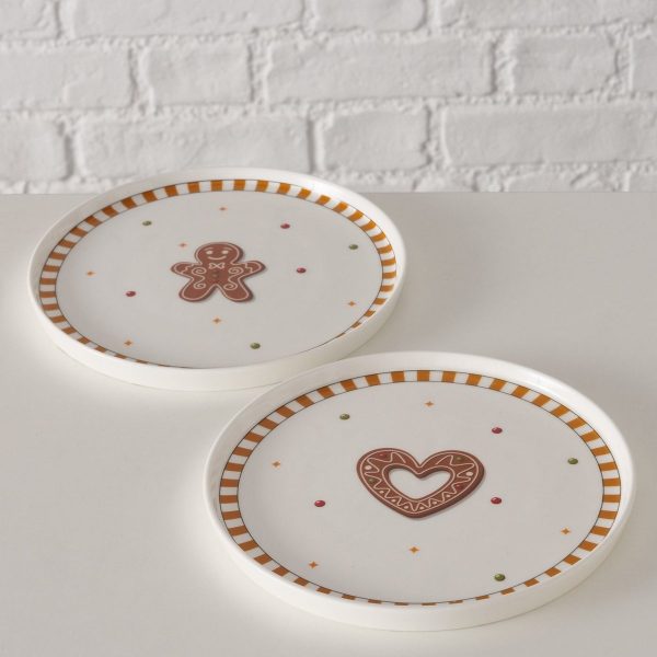 Plate Ginger, 2 ass., Stoneware, Multi-coloured, Brown, White, Round Stoneware colour-mix