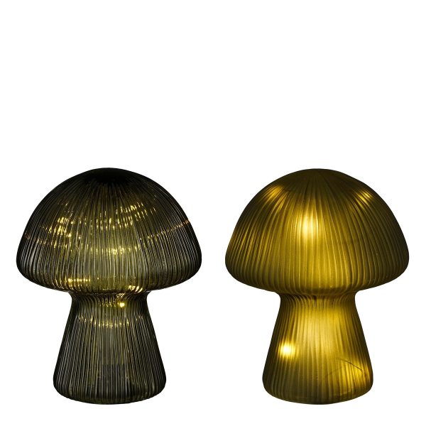 Lamp mushroom glass green 2 assorted 15 led battery operated – h20xd16cm glass