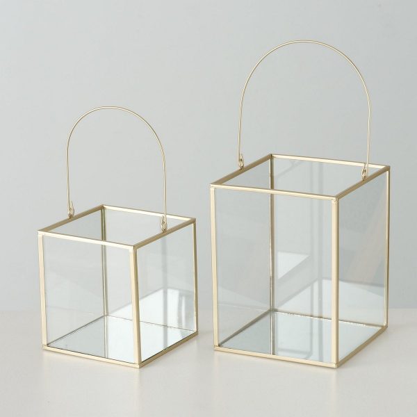 Windlight Malta, 2 p., Set 2, Square, H 14-19 cm, Iron, Single-colour iron gold
