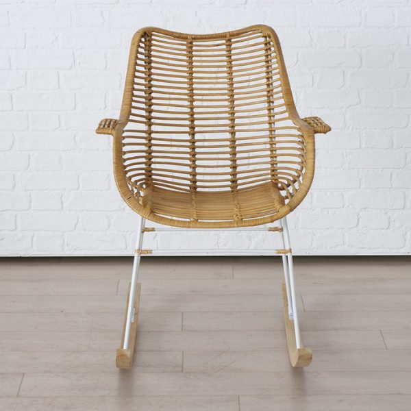 Rocking chair Lavjio, H 91,00 cm, Teak wood (Tectona grandis), Iron powder coated, Rattan, Single-colour, Light brown, W