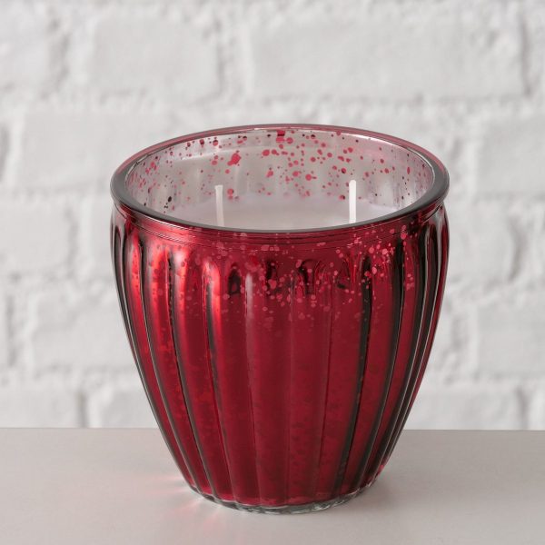 Candle pot Briga, Round, H 10 cm, Glass lacquered, Wax, Red, Silver mixed materials colour-mix