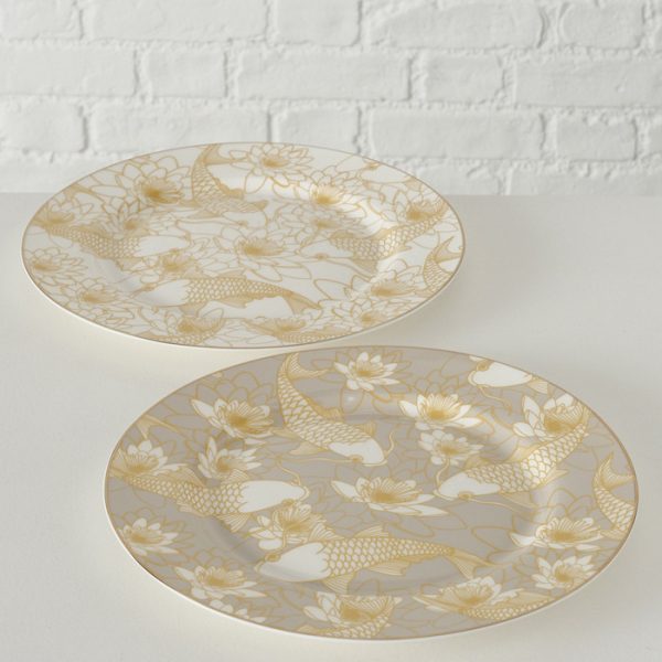 Plate Lotus, 2 ass., D 26,50 cm, New Bone, Coloured edge, Multi-coloured, Gold, Grey, Light grey, White New Bone colour-
