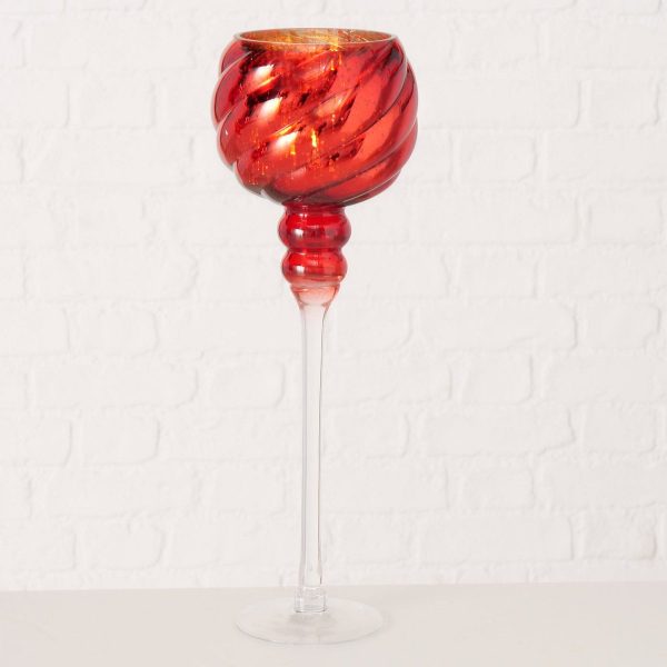 Windlight Manou, 3 p., Set 3, Round, H 30,00-40,00 cm, Glass laquered, Red glass laquered red