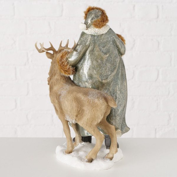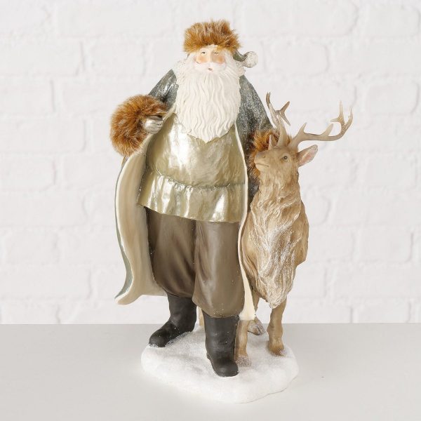 Figurine Flavyo, Deer, Santa, 18X17X31cm, Polyresin, Polyester, Beige, Brown, White mixed materials colour-mix