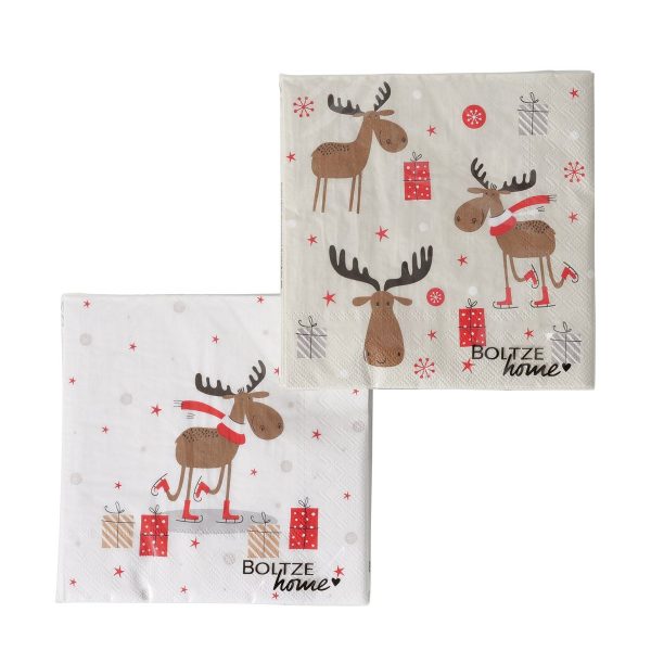 Napkins Joey, 20 p., 2 ass., Multi-coloured, Motif, Deer, Snowflake, Gift, Beige, Brown, Red, White, Paper paper colour-