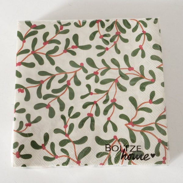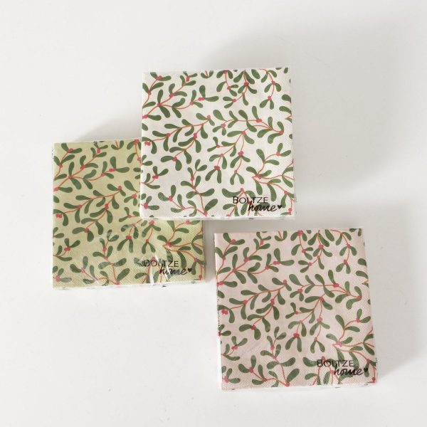 Napkins Mistletoe, 20 p., 3 ass., Floral, Multi-coloured, Branch, Cream white, Green, Light rose, Red, Paper paper colou