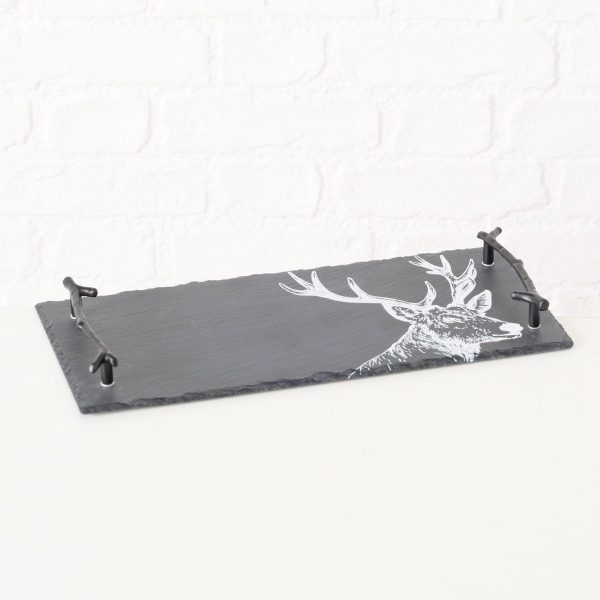 Tray Moritz, 2 p., Set 2, W 15,5-17 cm, Iron powder coated, Slate, Multi-coloured, Motif, Black mixed materials black