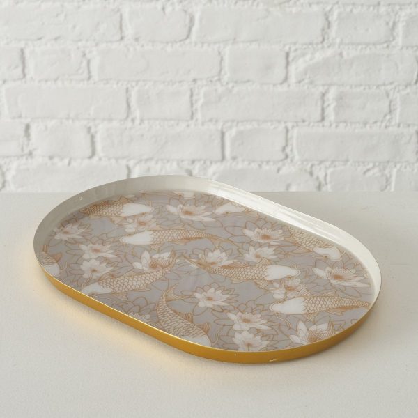 Tray Lotus, 3 p., Set 3, W 21,00 cm, Iron, Multi-coloured, Motif, Floral, Dark grey, Gold, Light grey, White iron colour