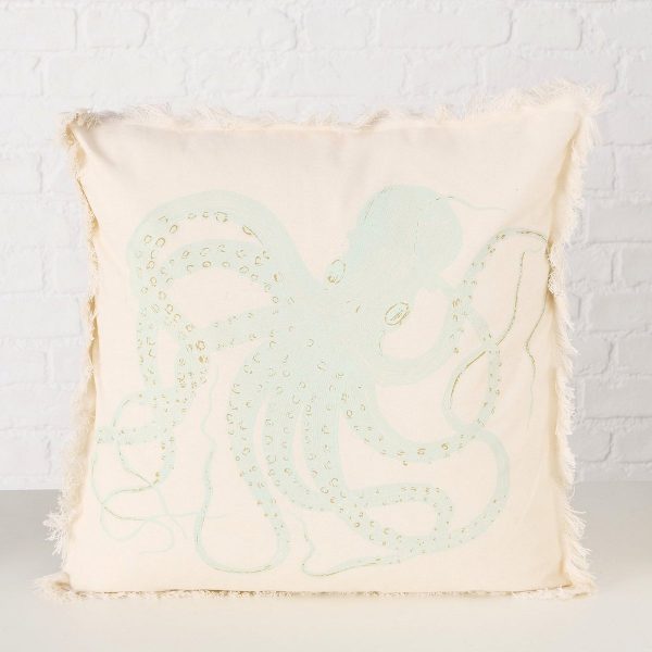Pillow Piova, 2 ass., Cotton / 100%, Octopus, Multi-coloured, Motif, Beige, Light blue cotton colour-mix