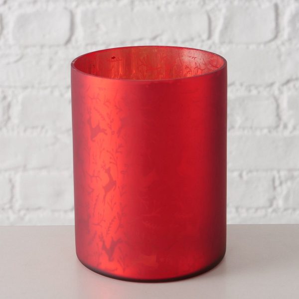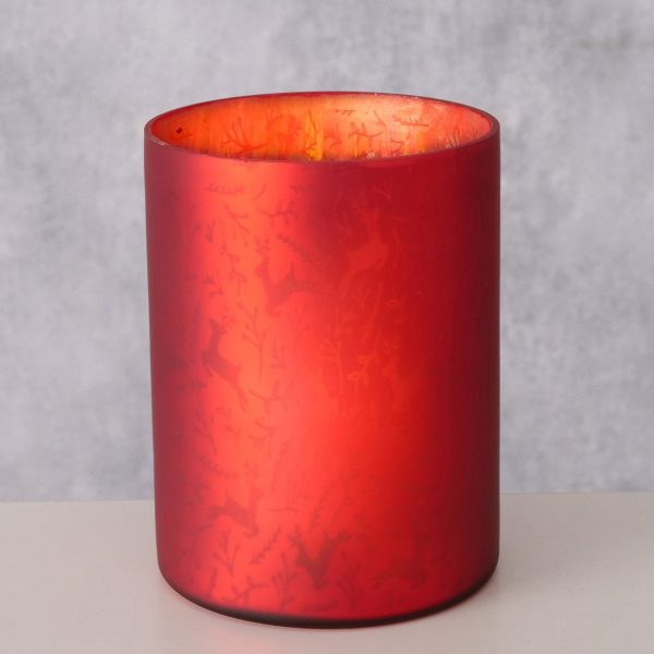 Windlight Gwendo, Round, H 13 cm, Glass lacquered, Single-colour glass laquered red