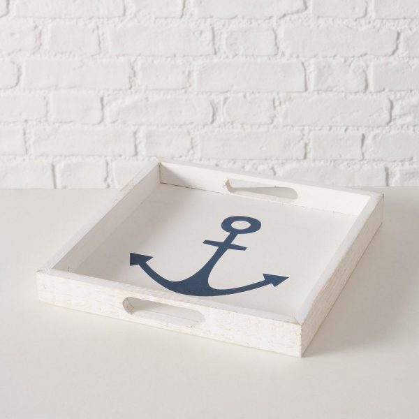 Tray Hallig, 3 p., Set 3, W 24-32 cm, Chinese fir (Cunninghamia lanceolata), Multi-coloured, Motif, Black, White china f