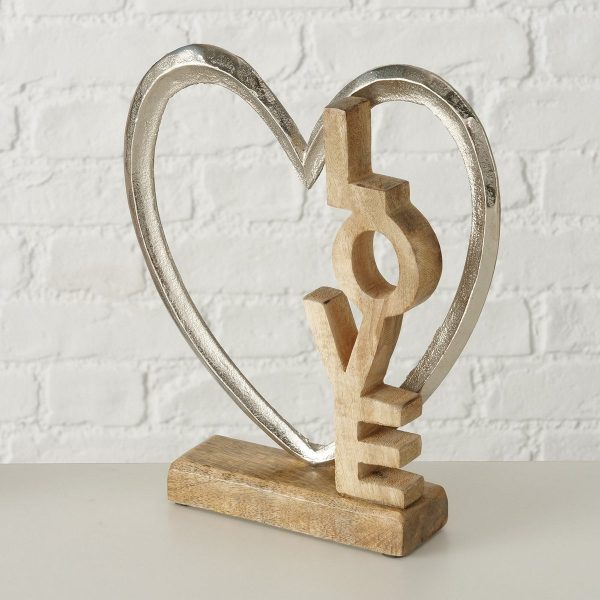 Decorative object Tova, 2 p., Set 2, Heart, H 22,00-26,00 cm, Mango (Mangifera indica), Alu nickle, Multi-coloured mixed