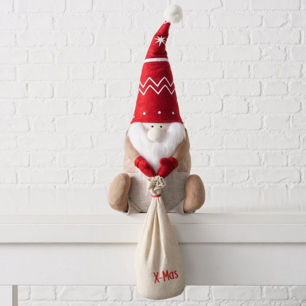 Door stop Fiete, Gnome, Santa, H 40 cm, W 15 cm, Polyacrylic, Linen, Polyester mixed materials colour-mix