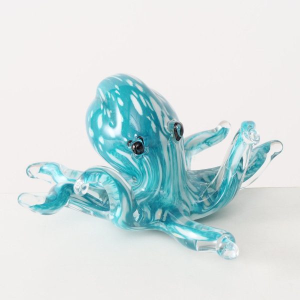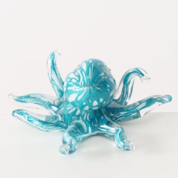 Figurine Argus, Octopus, H 9 cm, Glass solid colored, Turquoise, White glass solid colored colour-mix