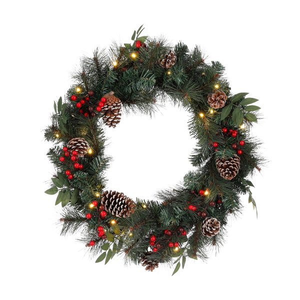 Collins wreath green40 led battery operated – h12xd70cm