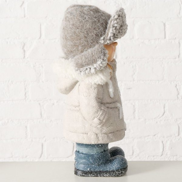Figurine Enni, Boy, H 40 cm, Magnesia, Polyester, Beige, Grey, White mixed materials colour-mix